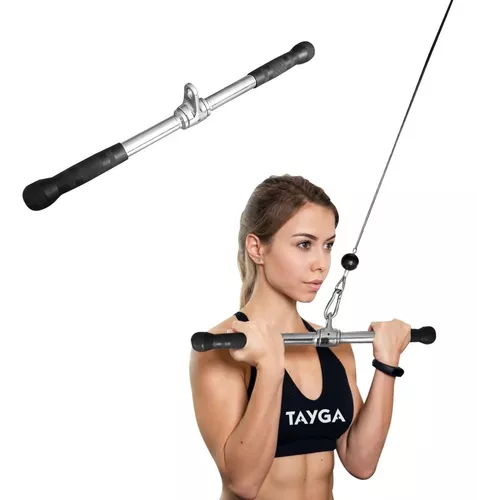La barra de polea corta es versátil y se puede utilizar para una variedad de ejercicios, como pull-downs, curls, extensiones de tríceps y otros movimientos de aislamiento.