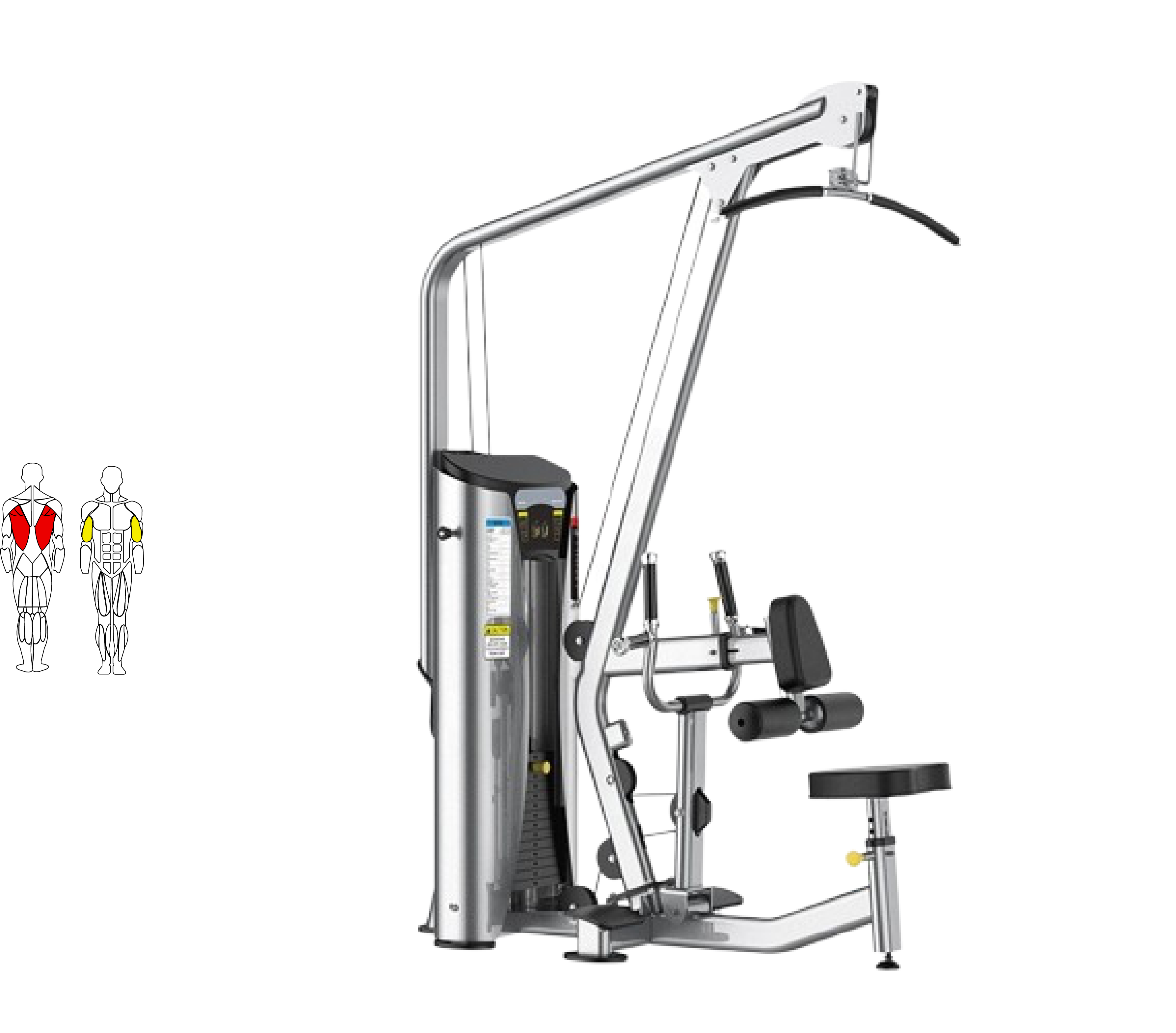 La almohadilla telescópica para el pecho con sujeción integrada para el muslo proporciona una posición y un soporte adecuados para ejercicios de polea hacia abajo y de remo a mitad de carrera.